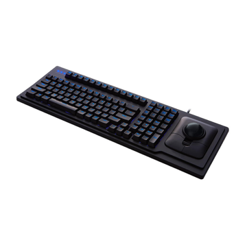 | Die beleuchtete KTQ-105 bietet neben einer 4-stufigen Helligkeitssteuerung zusätzlich einen extra großen optischen Trackball. Die übersichtliche Tastatur unterstützt gleichermaßen im Büro zur Bedienung von Grafikprogrammen, als auch in der Industrie für die sichere Dateneingabe mit Handschuhen. Die Abmaße liegen bei ca. 510x170x28 mm. | |